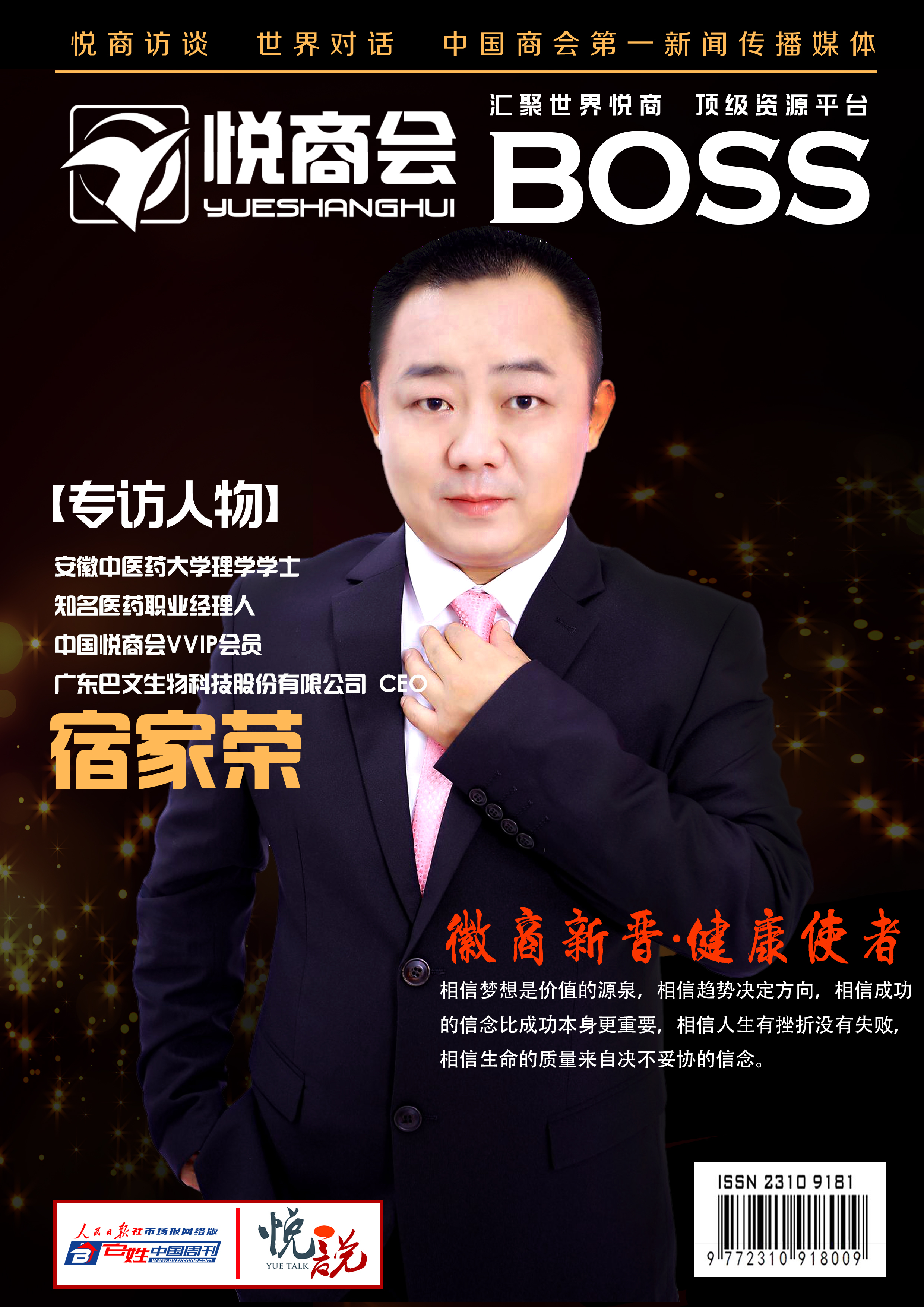 宿家荣,广东巴文生物科技股份有限公司CEO,生于中国四大药都之首华佗故里安徽亳州,2004年毕业于安徽中医药大学,获理学学士。曾任世界500强美国辉瑞制药、英国阿斯利康制药、生长因子领导公司(南海朗肽)制药、中药领导公司(康缘药业)学术专员、销售经理、销售总监等职务。于2017年初联合中金系、法国疤纹研究中心、法国巴文化妆品公司、中科院广东分院及知名高校组建成立广东巴文生物科技股份有限公司。秉承天下无疤的理念,专注于提供医学美容领域祛疤、除纹产品,公司持续推出疤系列、纹系列、炎系列妆字号、消字号、械字号及准字号等产品。目前推出巴文医用疤痕贴(械准字号2类)首款主打产品,选用美国道康宁公司生产的顶级原料、利用纳米中透技术、采用双层复合结构,提升疗效的同时,克服了市场上医用疤痕贴常见的一些副作用,针对各种疤痕具有很好的预防、治疗等作用。