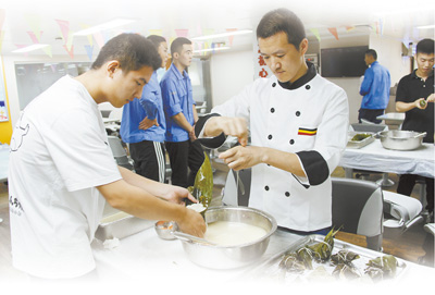 后勤系统组织船员包粽子过端午。 |